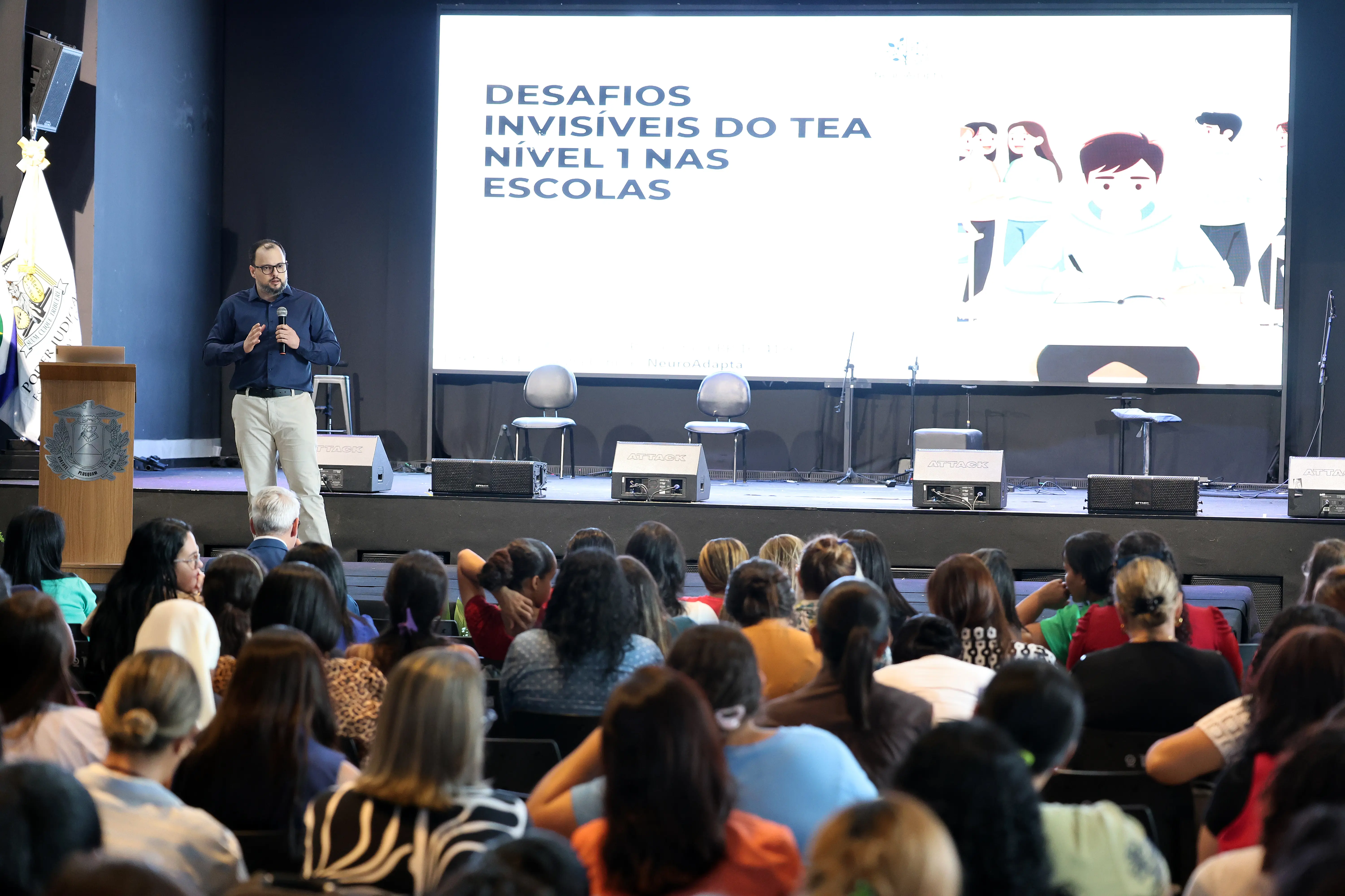 Nem sempre o que mais desafia a inclusão pode ser percebido de imediato. Em muitos casos, está justamente no que passa despercebido, no comportamento que parece apenas timidez, distração, dificuldade de socialização ou até indisciplina. Foi com esse olhar sensível e técnico que o psicólogo Marcelo Zanotti da Silva conduziu a palestra “Desafios invisíveis do transtorno do espectro autista de nível I de suporte nas escolas”, durante a programação do TJMT Inclusivo: Autismo e Direitos das Pessoas com Deficiência, realizado nesta quinta-feira (16), em Cuiabá.